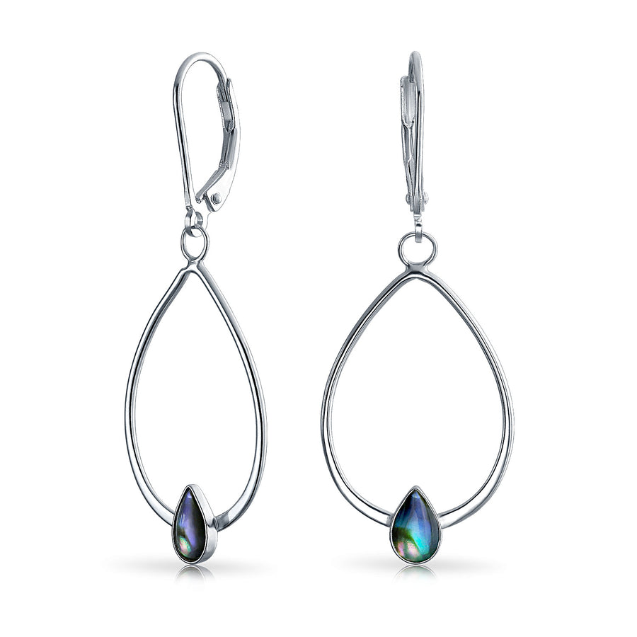 - For a modern feel with a dash of color, choose these beautiful sterling silver teardrop dangle earrings. The .925 sterling silver teardrop shaped hoop is highlighted with a natural abalone shell at the center. These lever back teardrop dangle earrings will give your look an airy, fresh feel exuding elegance.