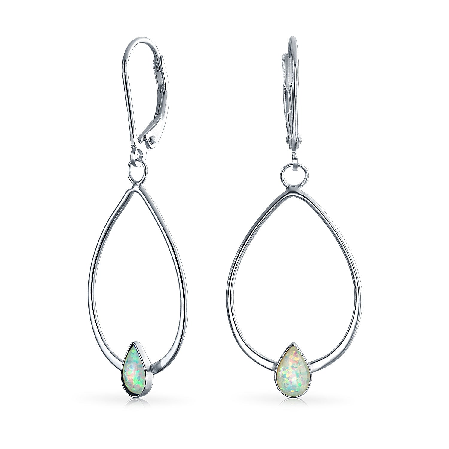 - Enhance your style with these elegant, featherweight teardrop earrings, showcasing a delicate synthetic white opal at the center of their graceful design. Crafted from .925 sterling silver, these leverback earrings are an ideal gift for any occasion.