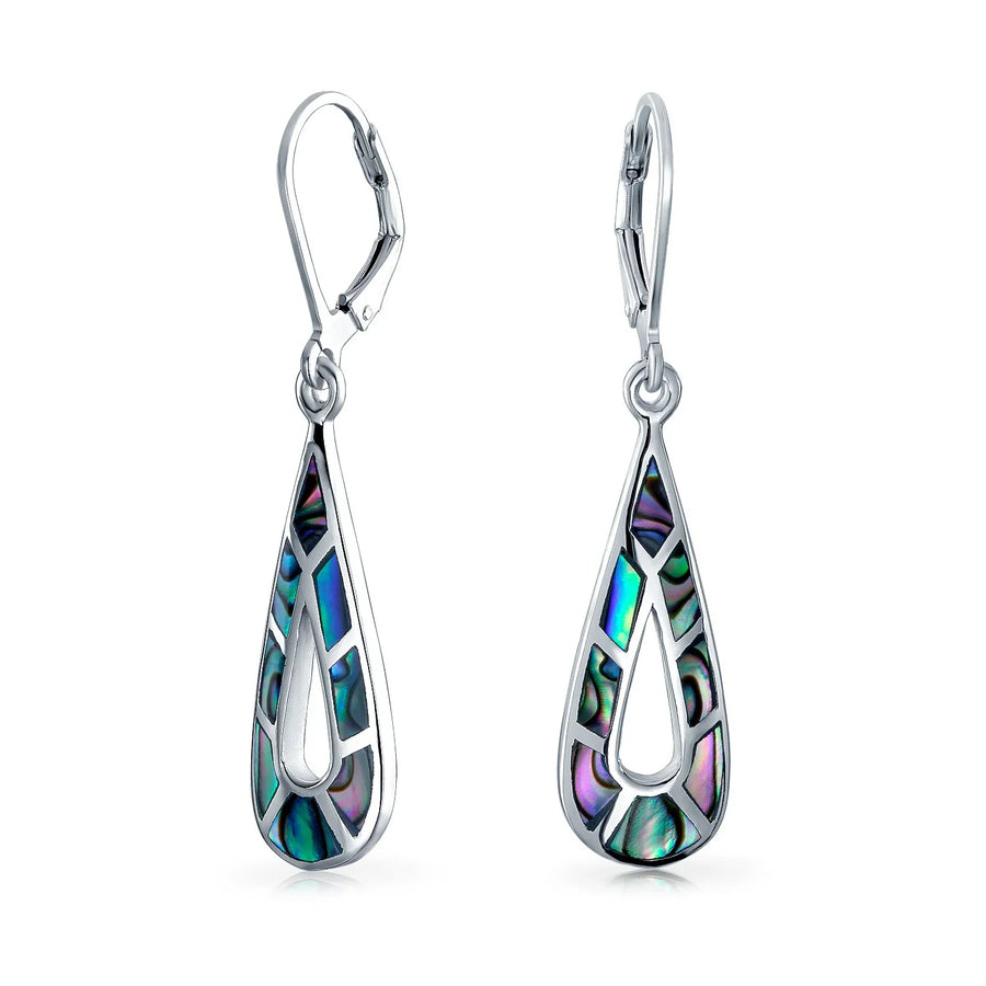 - Enhance your style with .925 sterling silver abalone inlay elongated dangle earrings. Perfect for summer, these teardrop earrings add elegance. Ideal gift for any occasion.