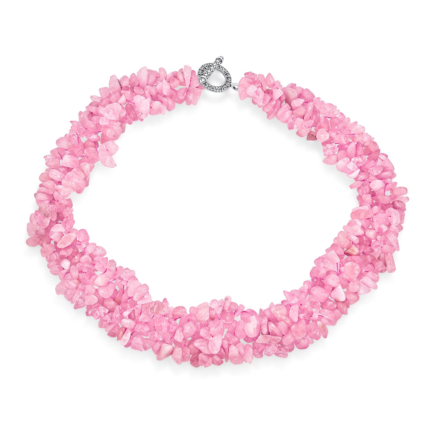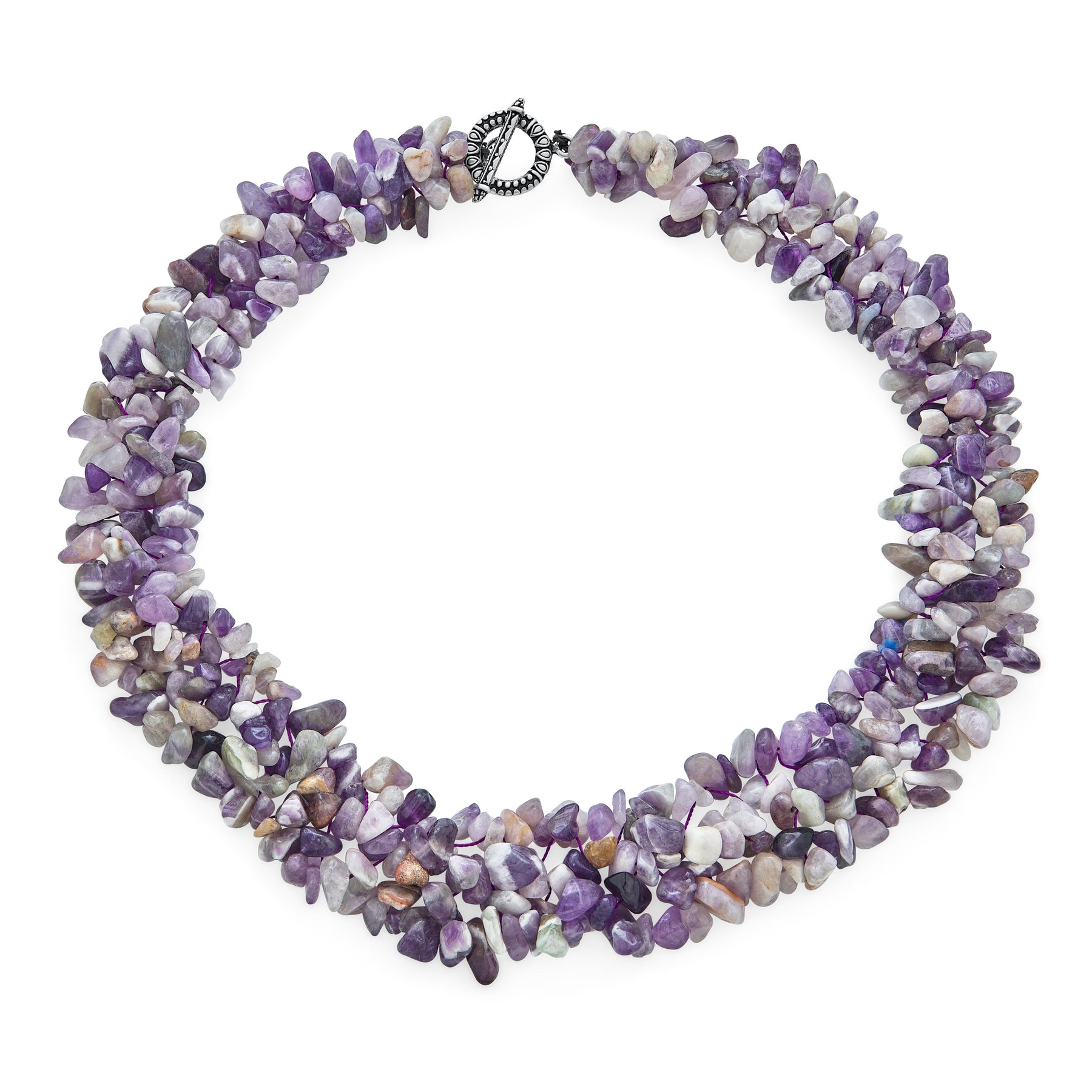 - Undeniably beautiful, this gemstone necklace is the statement jewelry you've been seeking. Rich colors and eye-catching shapes make this bib necklace a treasure. Brilliant chips are strung on an interwoven multi-strand design. This gem jewelry secures with a silver-toned toggle clasp. Chunky gemstone necklaces like this have a bold yet simple style. Perfect pieces that complement any outfit. Dress up your favorite white tee or add pizazz to a summer sundress. With these Statement Necklaces, you'll always be in style.