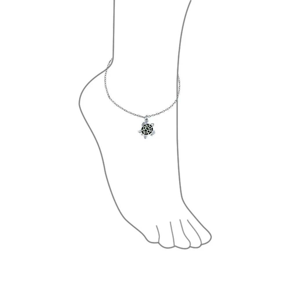 Hawaii Nautical Charm Sea Green Turtle Anklet Ankle Bracelet Silver 9-10 Inch - Bling Jewelry
