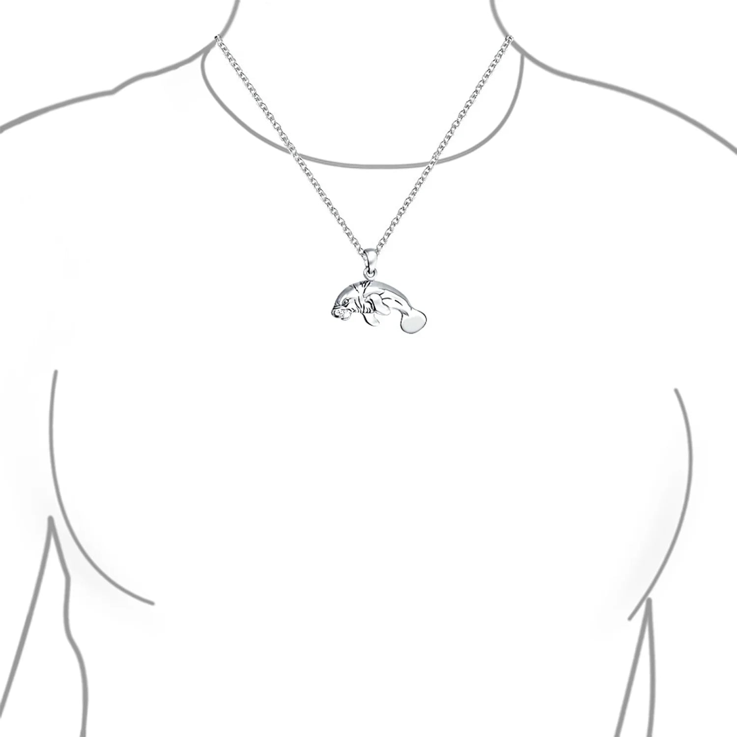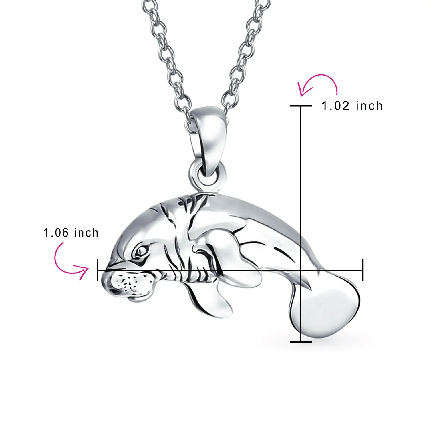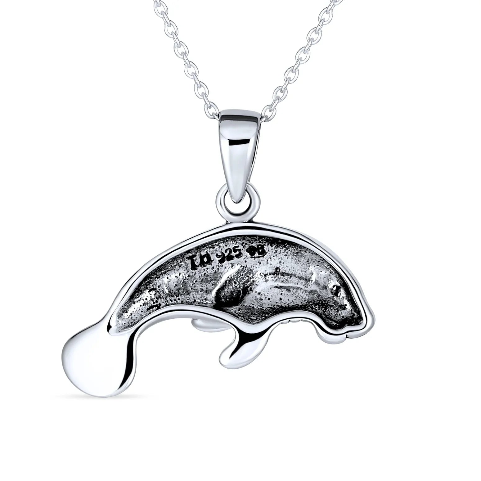 - Discover the beauty of the majestic manatee with this exquisite .925 Sterling Silver pendant. Crafted with intricate details, it captures the playful nature of the manatee. Measuring just over an inch wide and .75in long, it's perfect for your summer jewelry collection. Ideal for manatee jewelry lovers and ocean-inspired pieces. A must-have for nature enthusiasts who adore sea otters and sea lions. Stay stylish and connected to nature with this charming animal pendant necklace. Add it to your beach jewelry collection today.