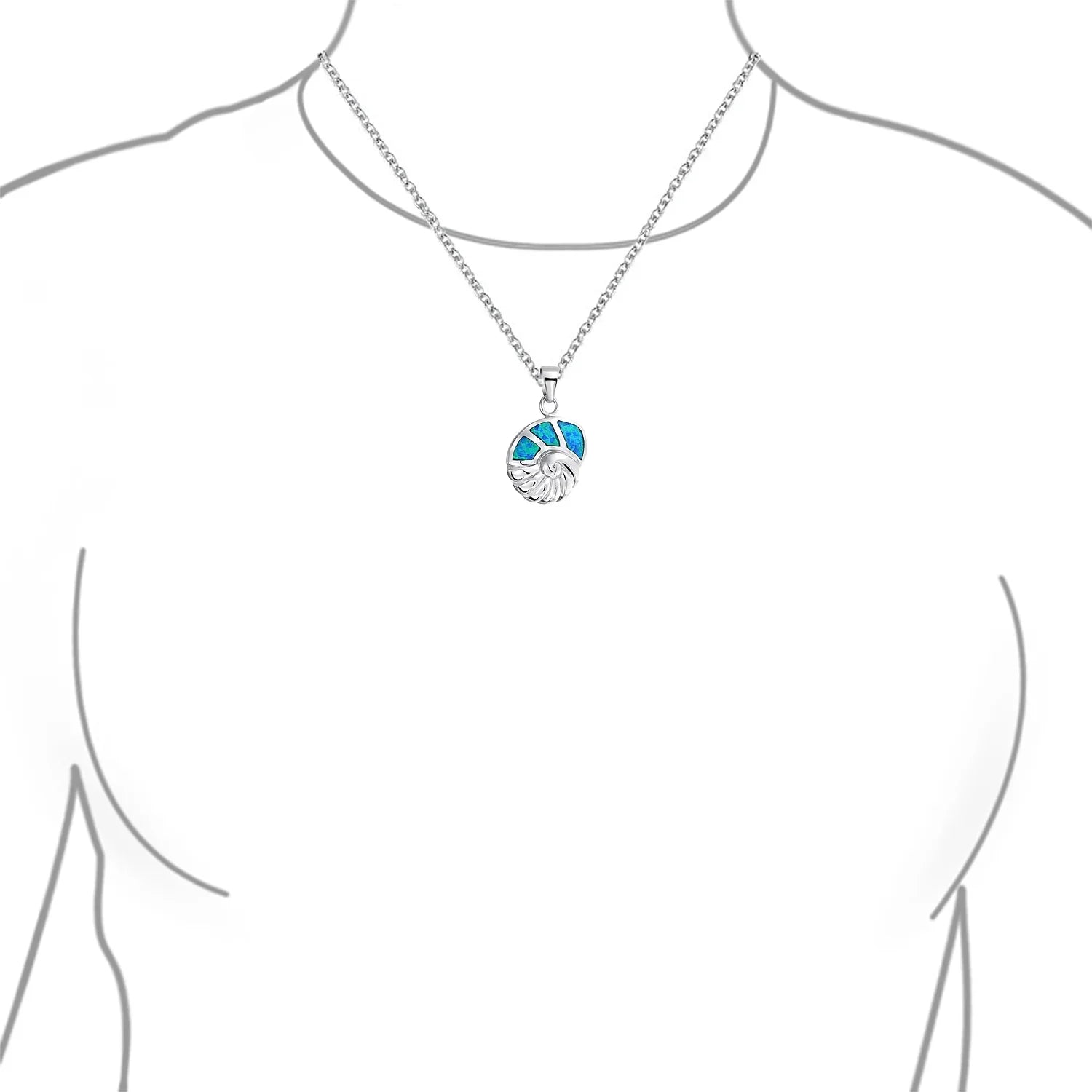 - Infuse a beachy summer vibe year-round with our .925 Sterling Silver nautilus shell pendant. Perfect October birthstone gift with Created Blue Opal. The iridescent blue and green flecks make this nautical seashell pendant eye-catching. Ideal for sea shell collectors, this rhodium-plated pendant is a unique find. Wear it on your favorite beach strolls for an on-trend look. Add summertime fun to your style with this unique jewelry piece. Chain included.