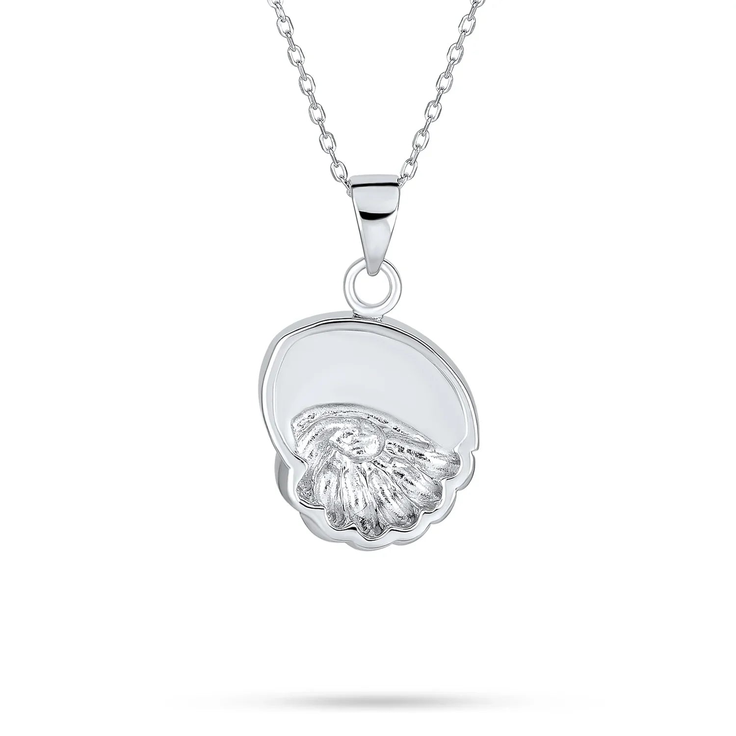 - Add some nautical glamour to your summer style with a pop of bright ocean blue to your look with this created opal shell necklace. Set in a swirling sterling silver sea shell, this pendant delivers oceanic style. The iridescent Opal inlay is very eye catching with its blue and green flecks of brilliant color and adds a very pretty look to our unusual piece of beach jewelry collection.
