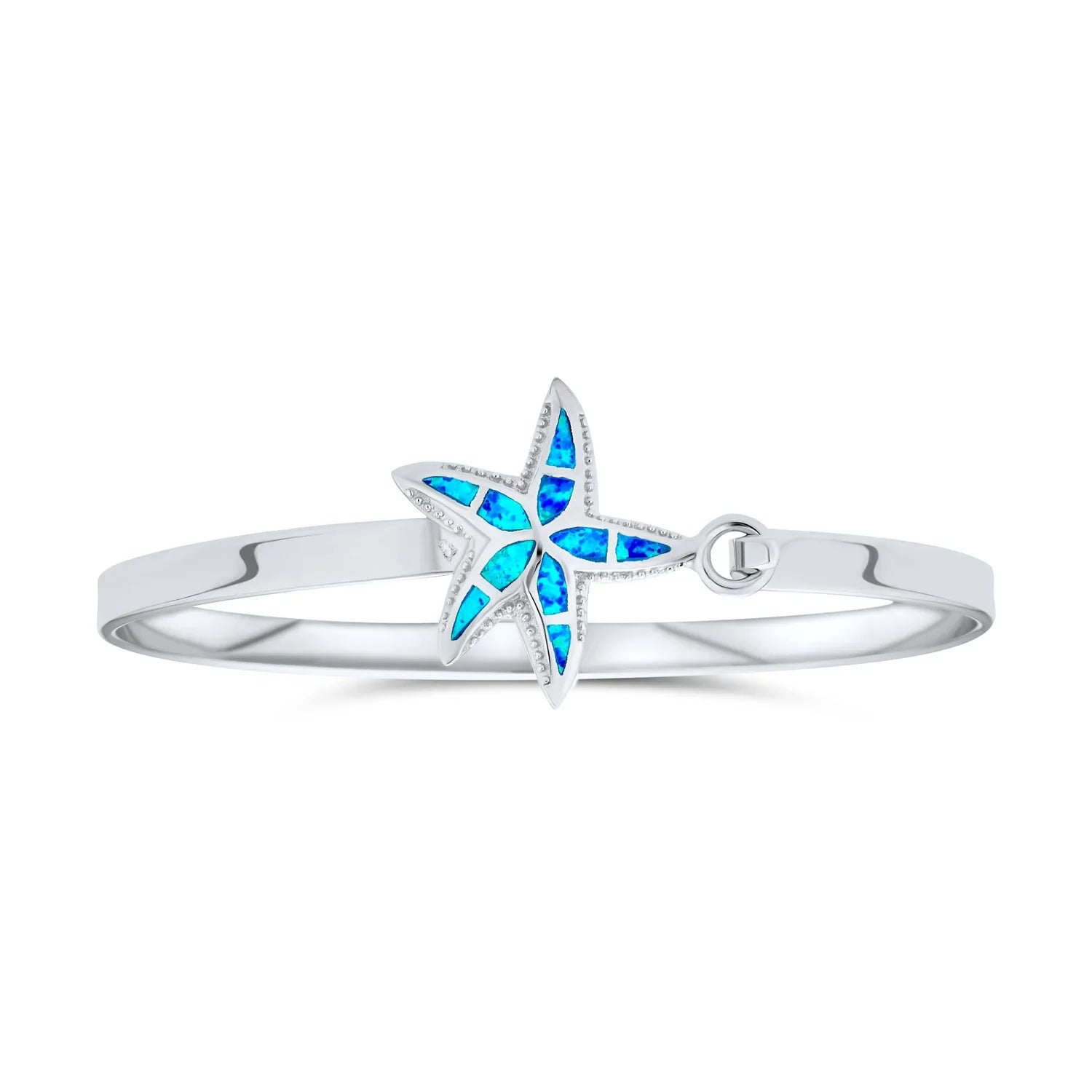 - Of all your who sits and whatsits galore, our starfish bangle bracelet will be your favorite. Featuring a cheery sea creature, this nautical jewelry is perfect for summer or a beach getaway. The silver bangle bracelet has a delicate band, high shine finish, and easy clasp. The textured, Created Opal inlaid starfish shines in blues and greens. This sunny starfish jewelry pairs perfectly with shorts, tees, and maxi dresses. Add our Marine Life Created Opal jewelry to your collection of gadgets and gizmos aplenty.