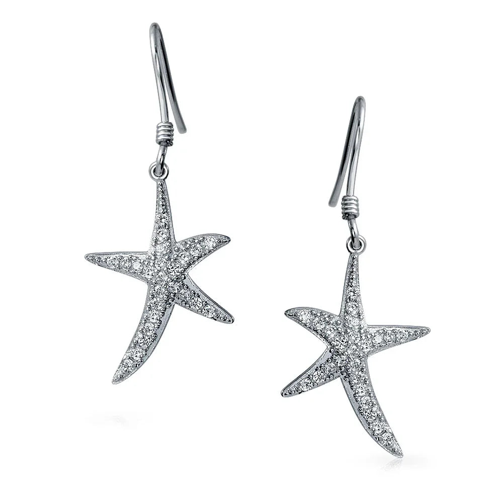 - Embrace your nautical style with our CZ Pave Starfish dangle earrings. Crafted from .925 sterling silver, they sparkle with clear cubic zirconia. Perfect for beach lovers, these affordable earrings make a glamorous statement. Treat yourself or gift someone special with these chic starfish earrings. Turn heads and feel fabulous with our stunning dangle earrings.