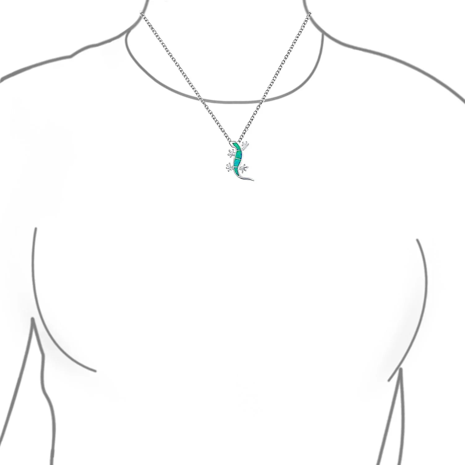 Nautical Tropical Green Opal Gecko Lizard Pendant Necklace in Sterling Silver