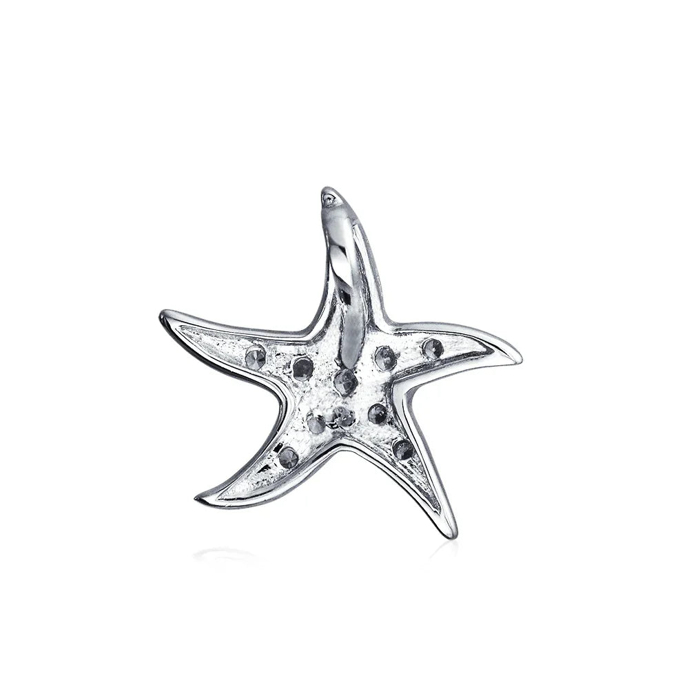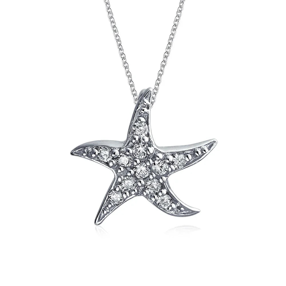Nautical Beach Small Starfish Pave CZ Pendant Necklace Sterling Silver 0.55 Inch - Bling Jewelry