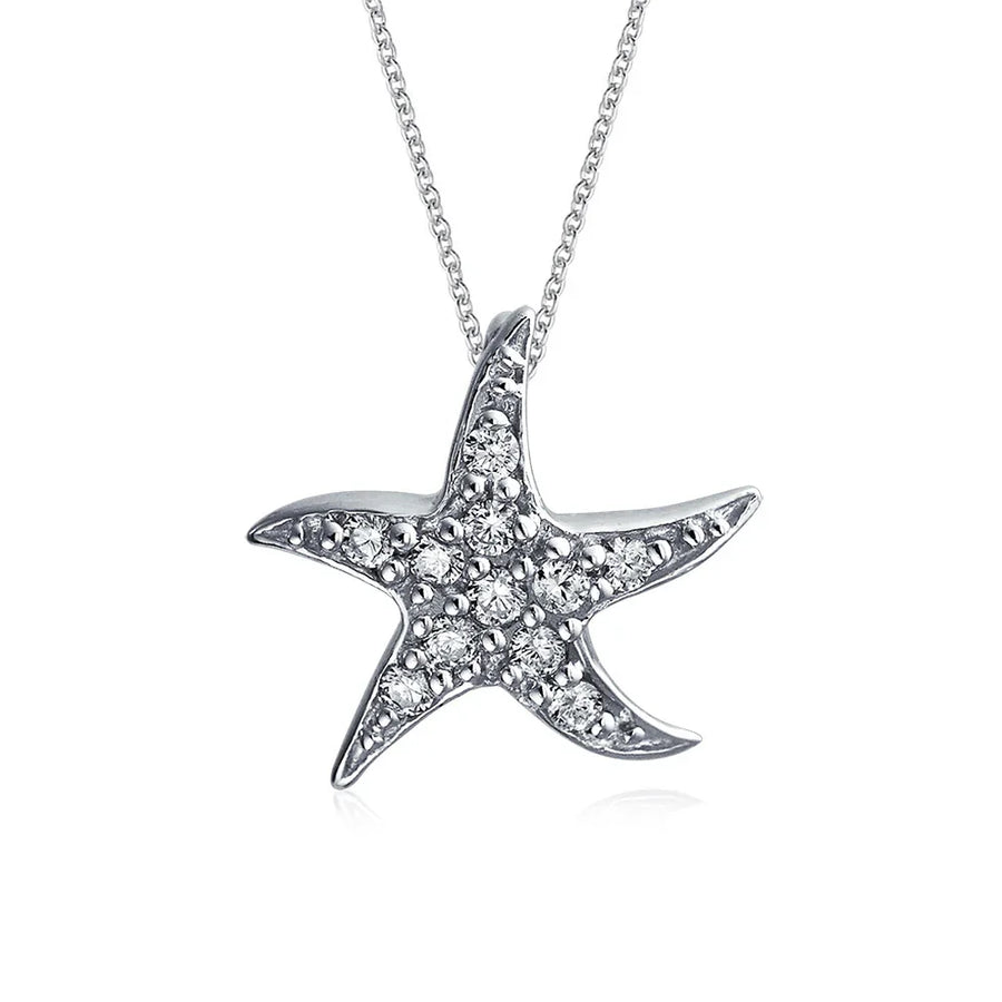 • ELEGANT MEDIUM DESIGN - Elevate your beach jewelry collection with this stunning starfish pendant necklace. Perfect for adding a touch of nautical style and glam to your look, this charming piece is a great memento of fun summers, honeymoons, or vacations. The shimmering pave czs add a playful touch to this delightful, dangling starfish necklace.