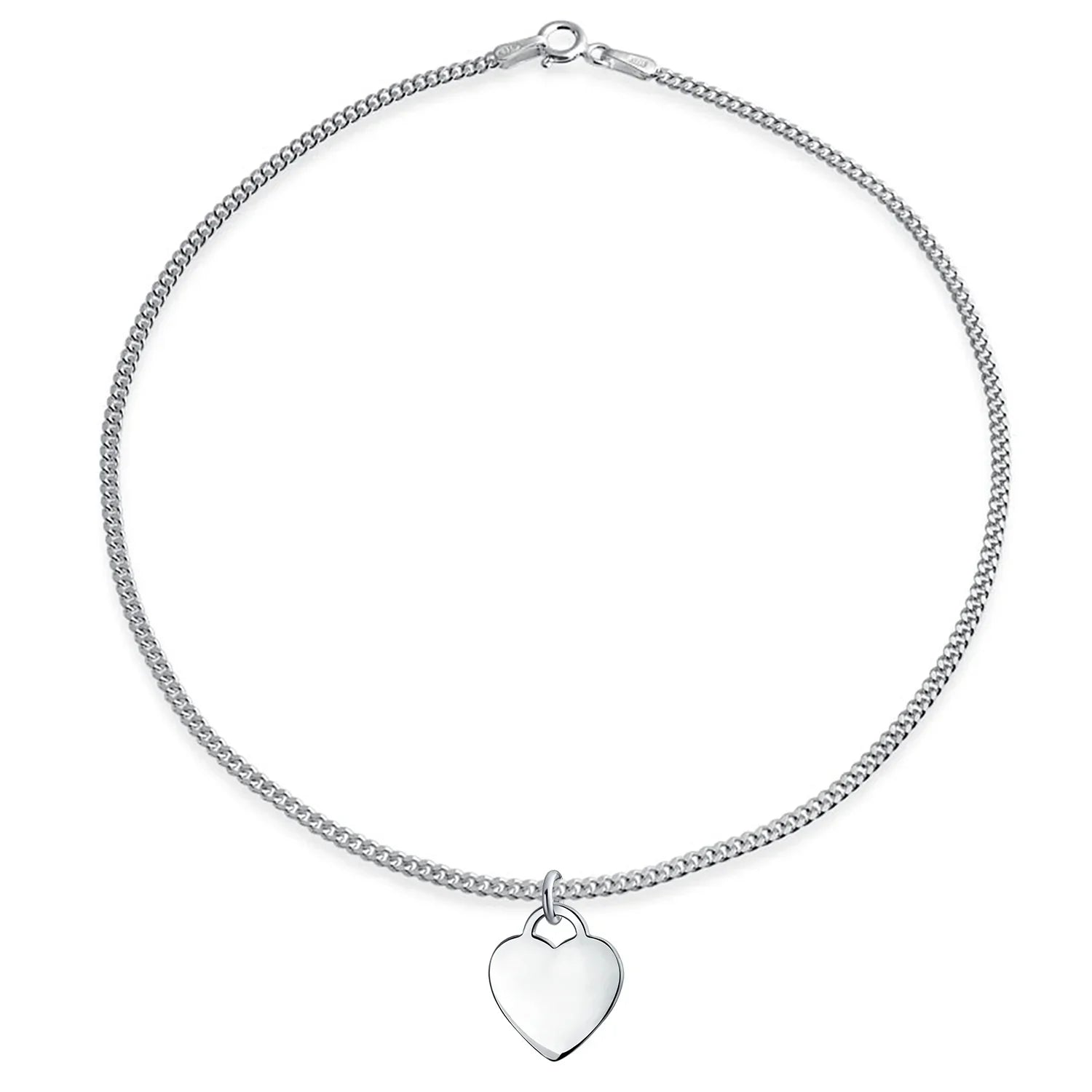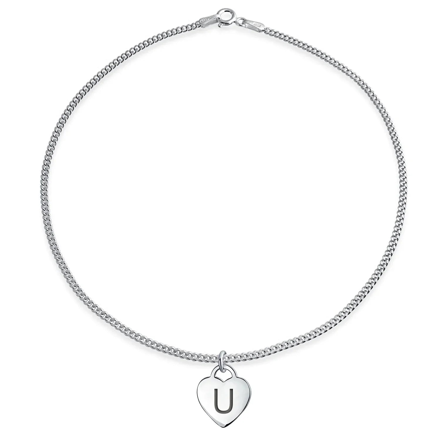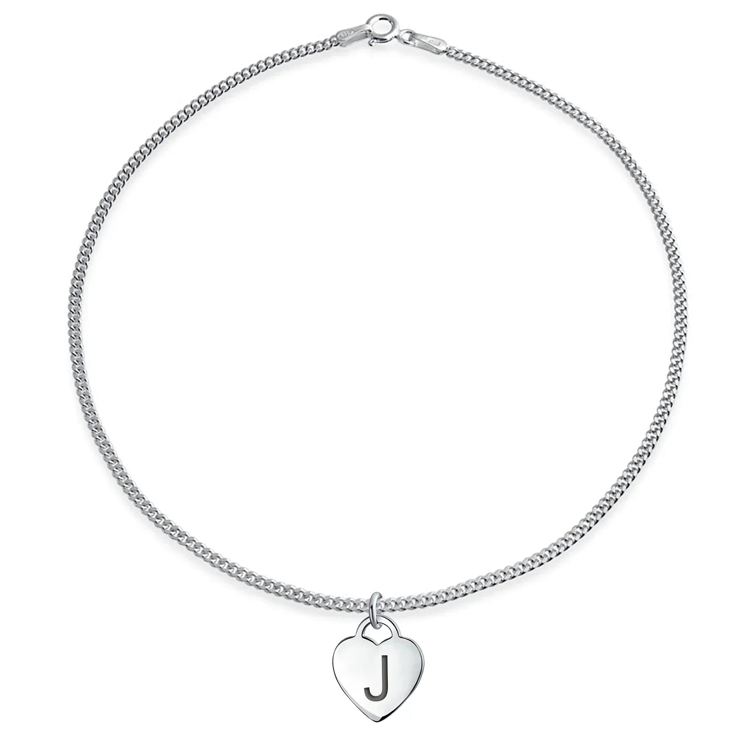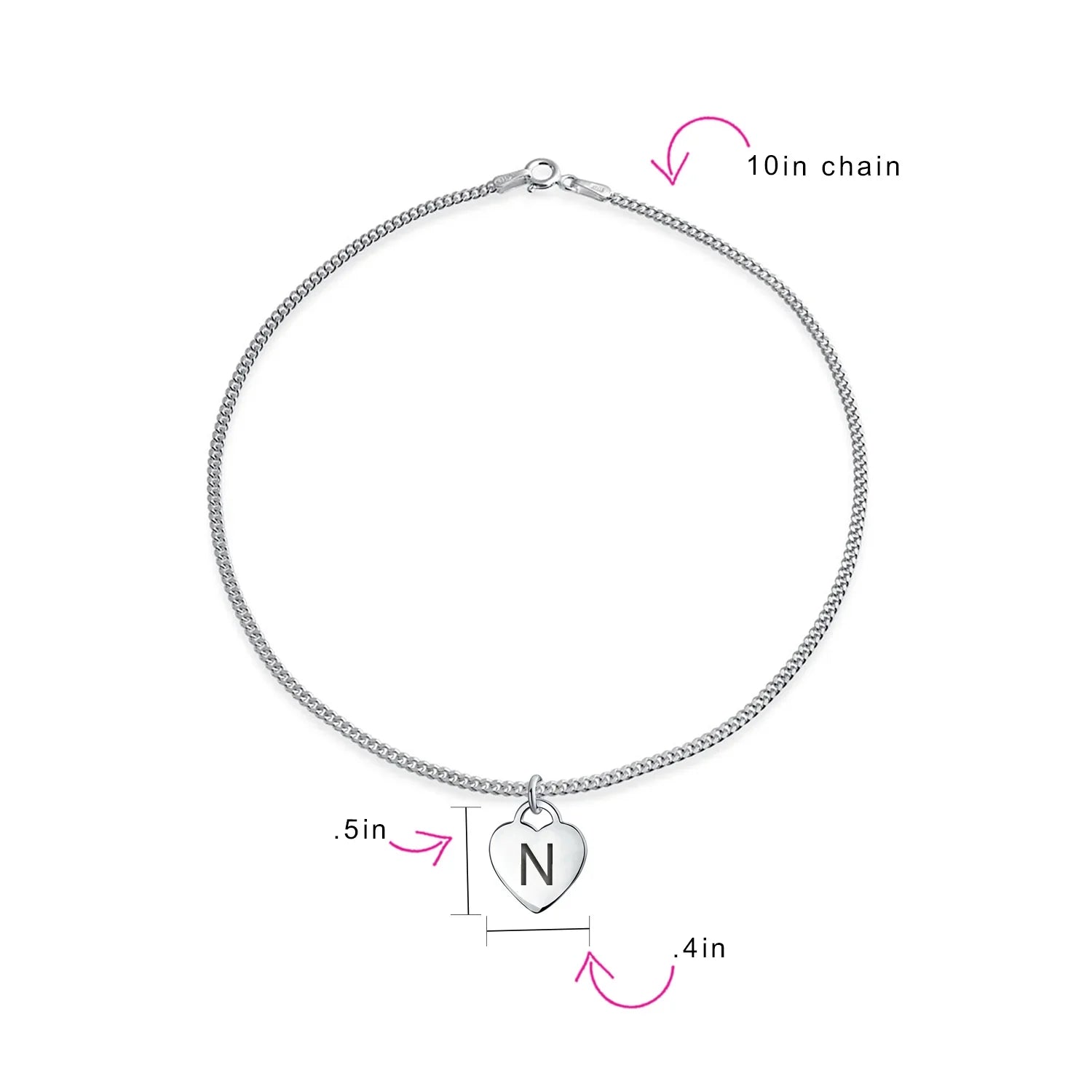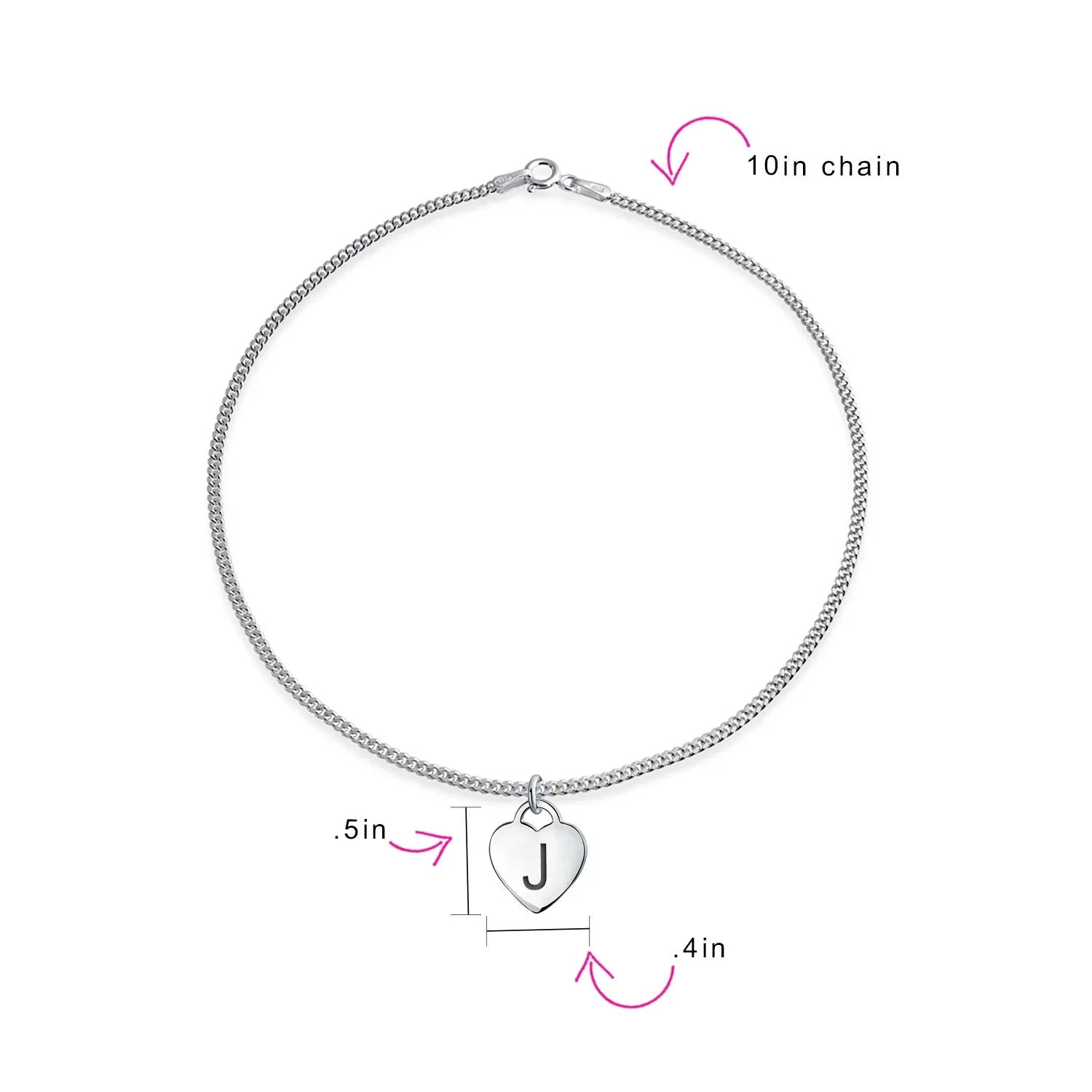 Tiny ABC Heart Initial Alphabet Anklet Ankle Bracelet Sterling Silver 9-10 Inch