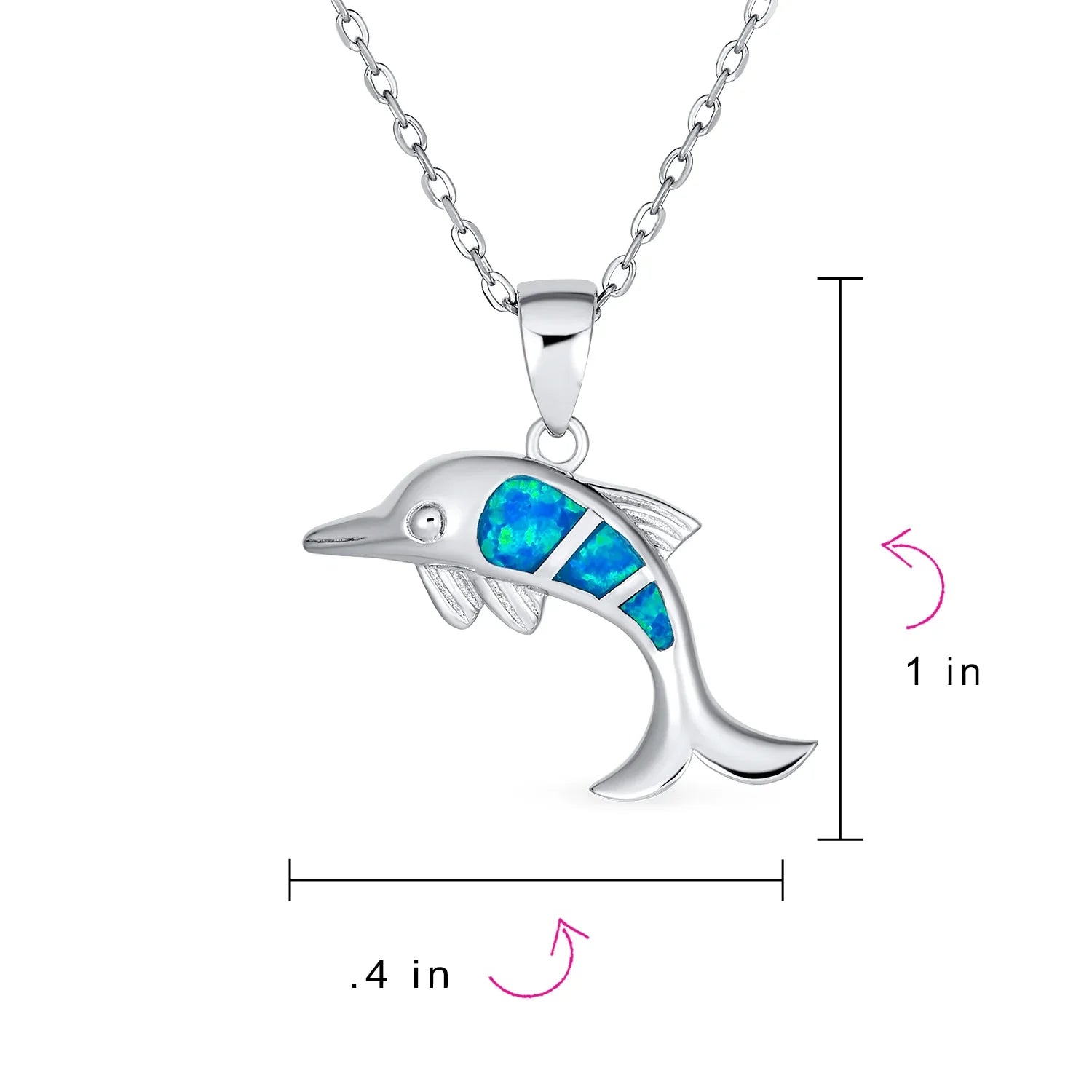 - Chic and fun, our whimsical sterling silver Created Blue Opal dolphin Pendant Necklace is sure to attract attention. Dolphins, known for their playful behavior, inspire this unique piece. Perfect for beach and sea lovers, it adds a nautical touch to any outfit. Made from 925 sterling silver and rhodium plated, it resists tarnish and maintains shine. Lightweight with specks of blue and green, it evokes tropical waters. Ideal as an October birthstone gift, order your blue Pendant Necklace today.