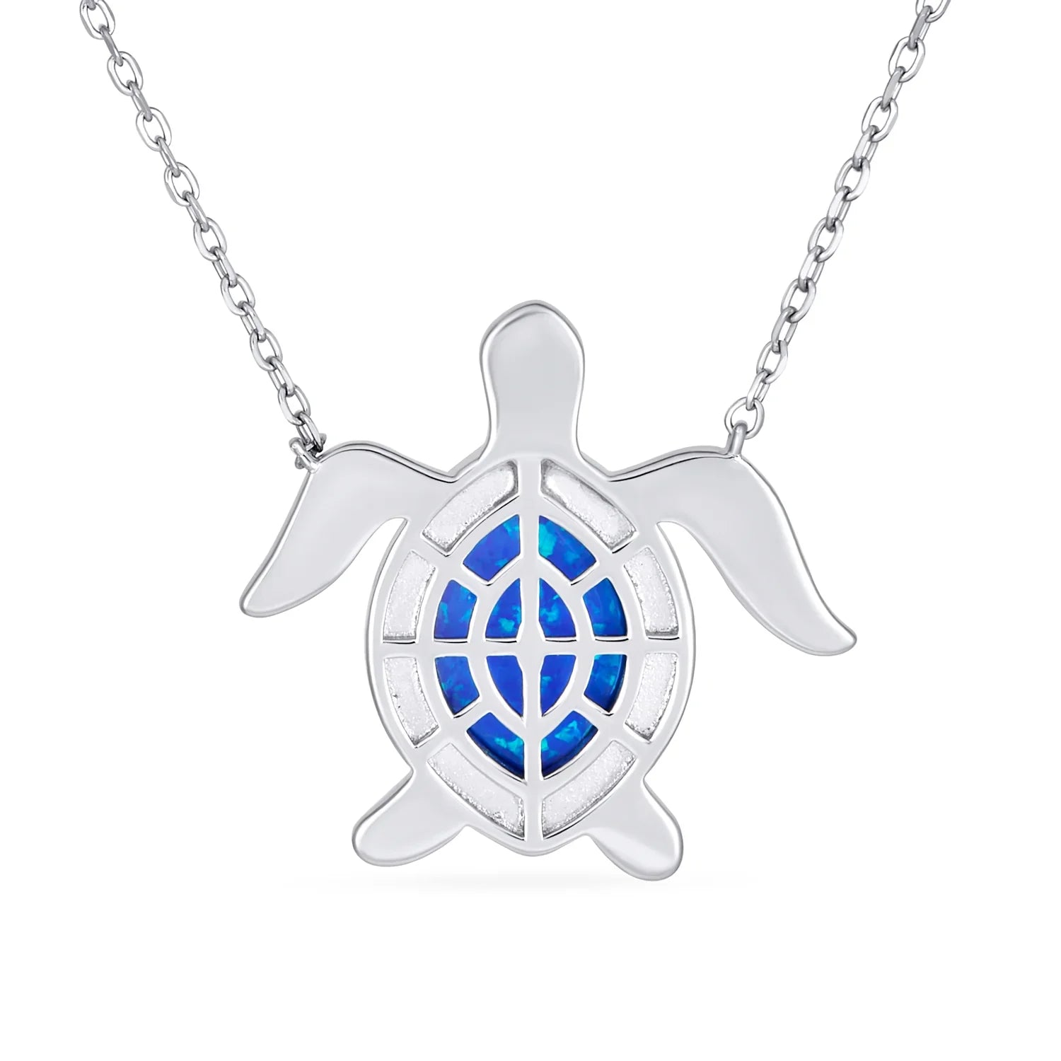 - Our Blue Opal Inlay Hawaiian Sea Turtle Pendant is a must-have jewelry piece. The rhodium-plated .925 Sterling Silver shines brightly. The Created Opalescent inlay sparkles in multiple blue hues. Perfect nautical jewelry for October birthdays.