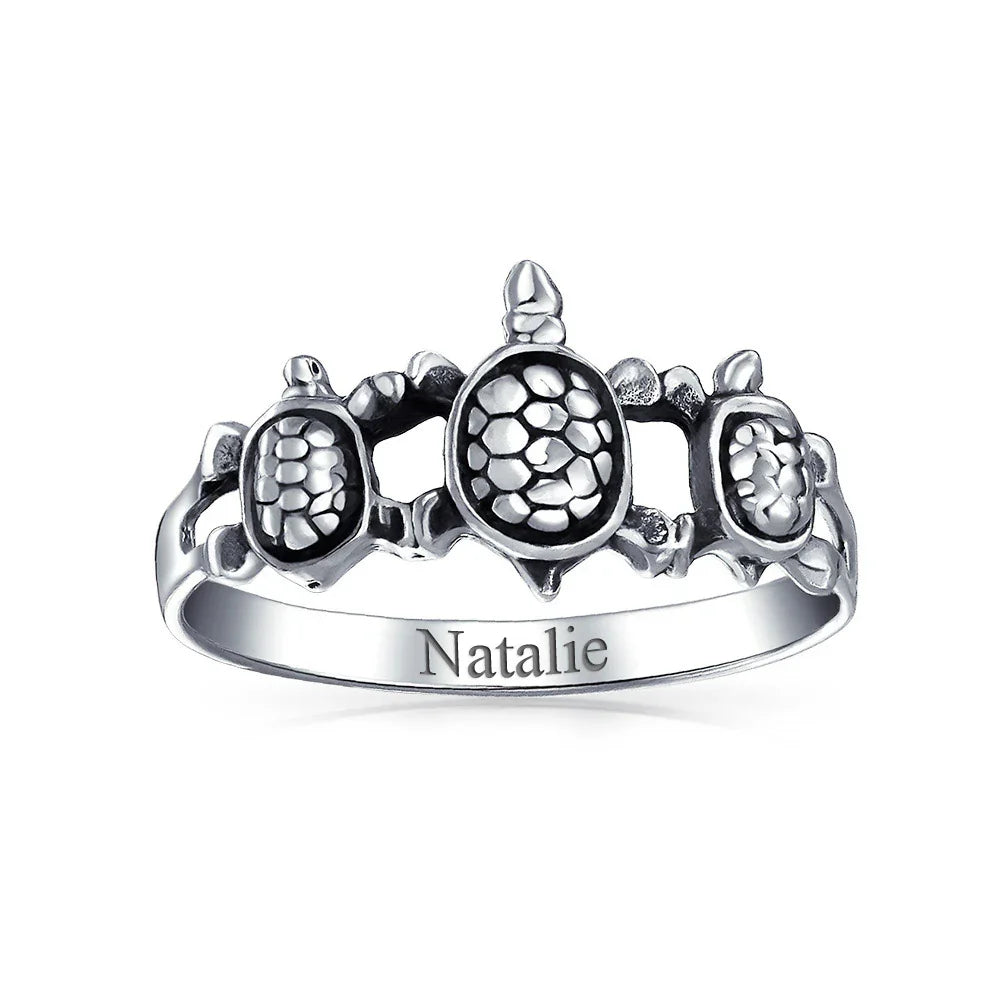 - Discover our adorable sterling silver sea turtle ring, featuring three touching turtles. This cute animal ring showcases a turtle family. Perfect for nautical jewelry lovers, it complements any summer style. Embrace fashion with our slow and steady design. A fabulous gift for loved ones.